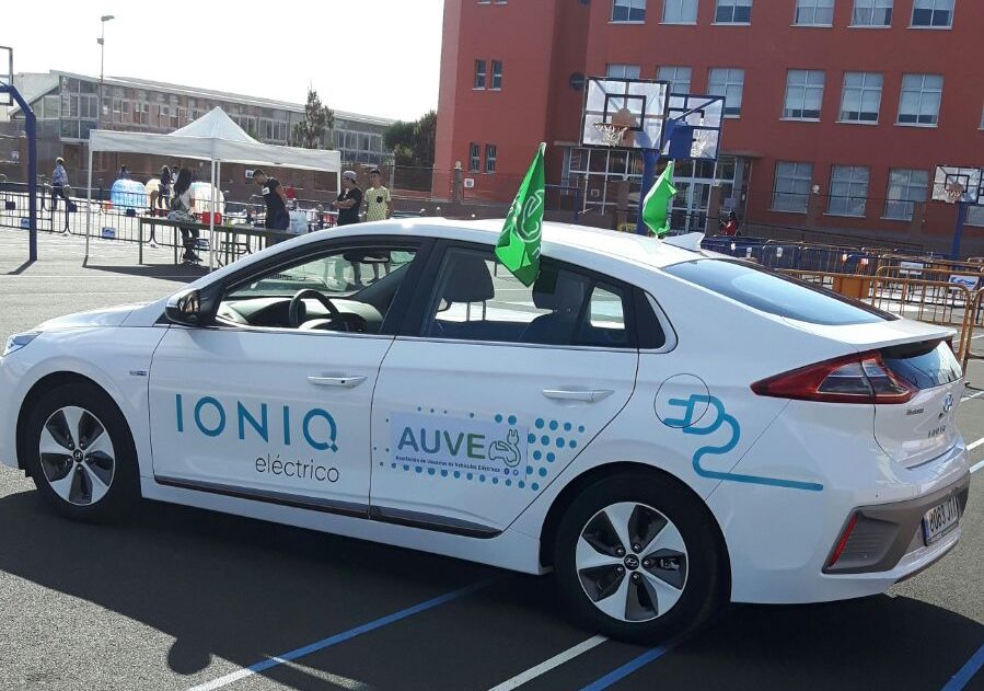 La AUVE participó con la muestra de 3 vehículos eléctricos. Un Hyundai Ioniq, cedido por el concesionario Hyundai Canarias, y dos vehículos más de miembros de la AUVE, un BMW 350e híbrido enchufable y un Nissan Leaf.