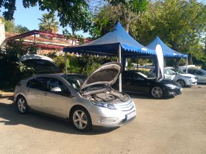 Participaron 3 coches para la AUVE: 1 TESLA Model S 85 2013del Socio Antonio José Carnero Rojo, de Cádiz, 1 Chevrolet Volt del Socio Fernando Macvoltio de Torremolinos y 1 Renault Zoe Zen 2016 del Delegado de Málaga Ignacio Pablo Insua de Benalmádena.