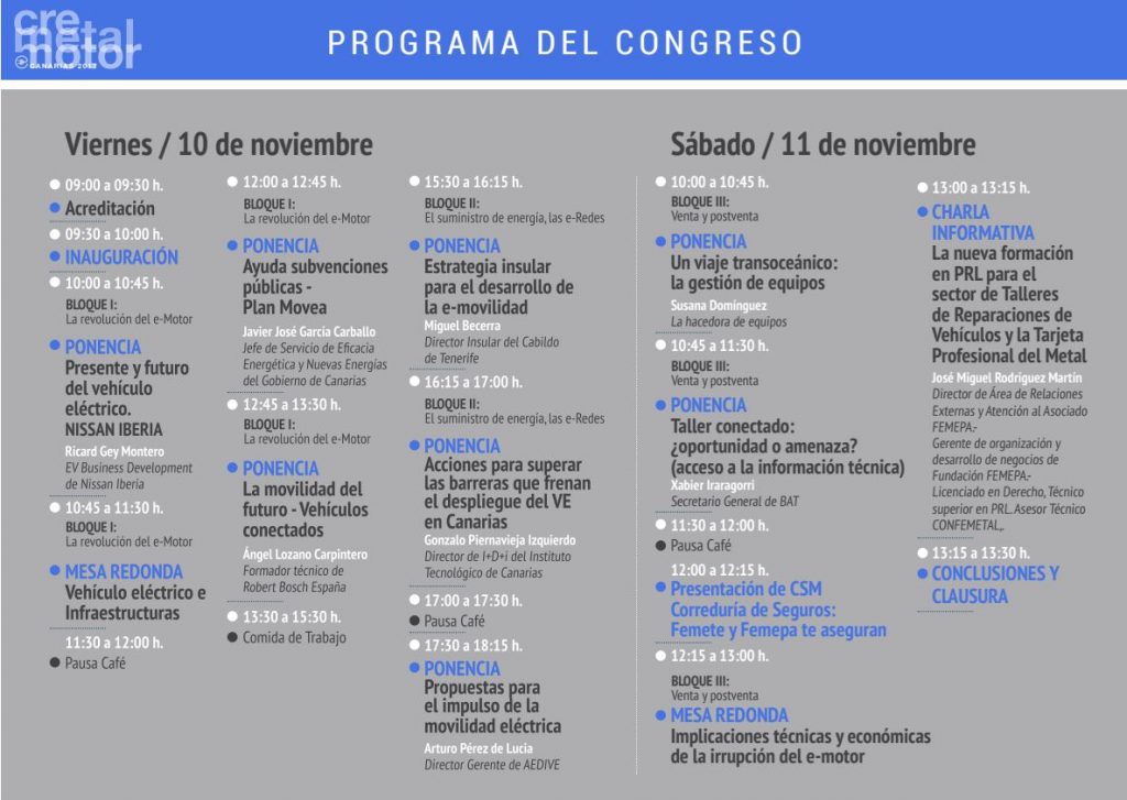 Mientras que el programa de del CREMetal eMotor fue el siguiente: