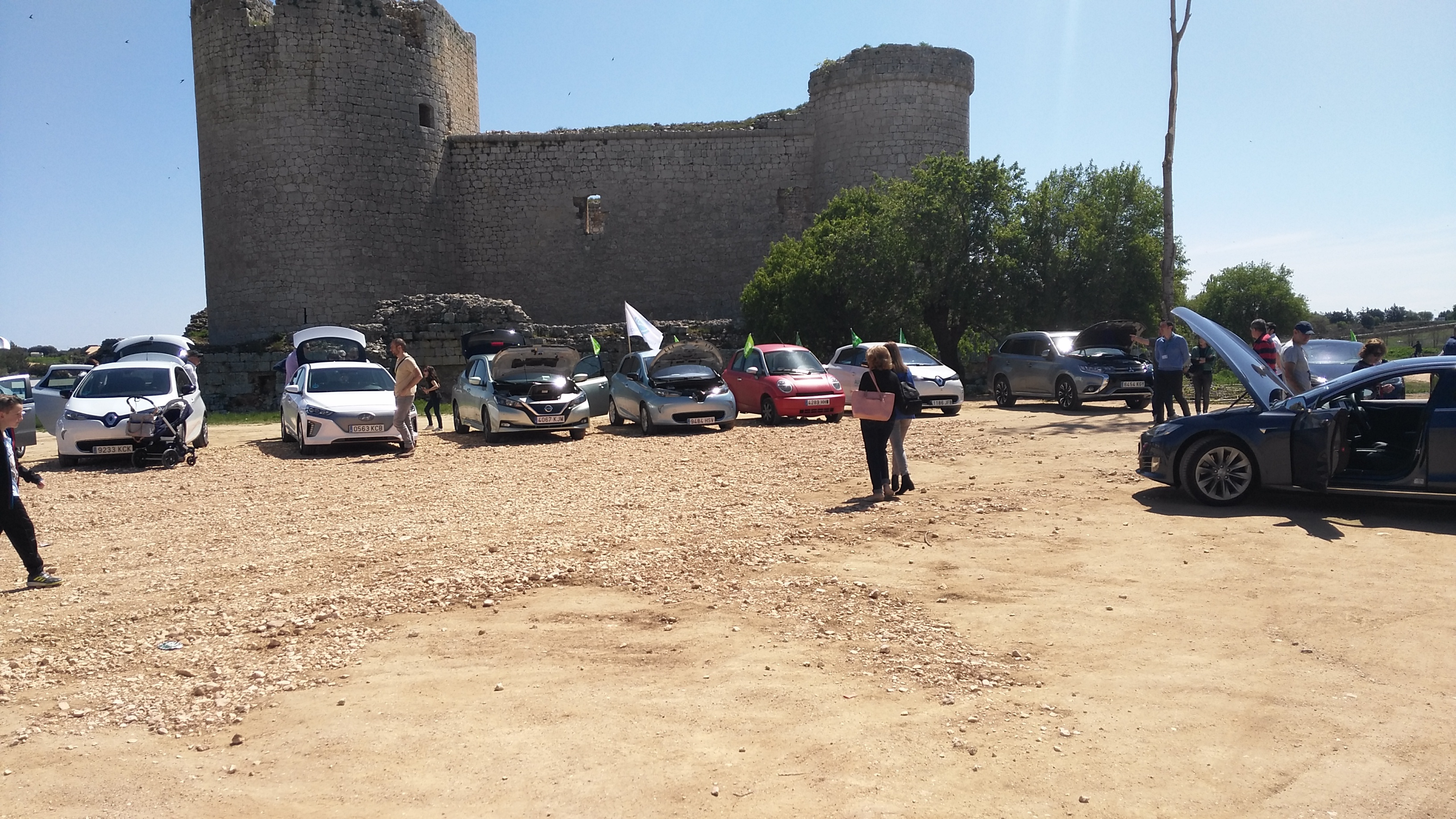 La reunión fue un gran éxito y gracias a que el tiempo acompañó, pudimos juntamos cerca de 20 vehículos de diferentes marcas. Las personas que se acercaron a ver los vehículos, se les iba informando de las bondades de los coches eléctricos e incluso algunos se les pudo dar un paseo por los alrededores. Junto al castillo de Pioz estuvimos cerca de 3 horas, las cuales se hicieron cortísimas. Gracias a esto, nos pudimos conocer a los nuevos socios de AUVE personalmente y después apuntarnos a una comida en un restaurante cercano.