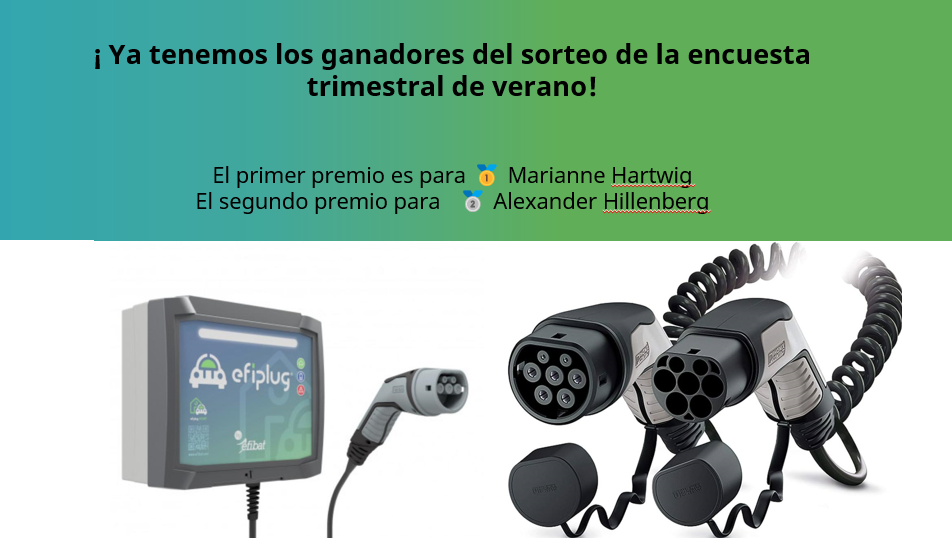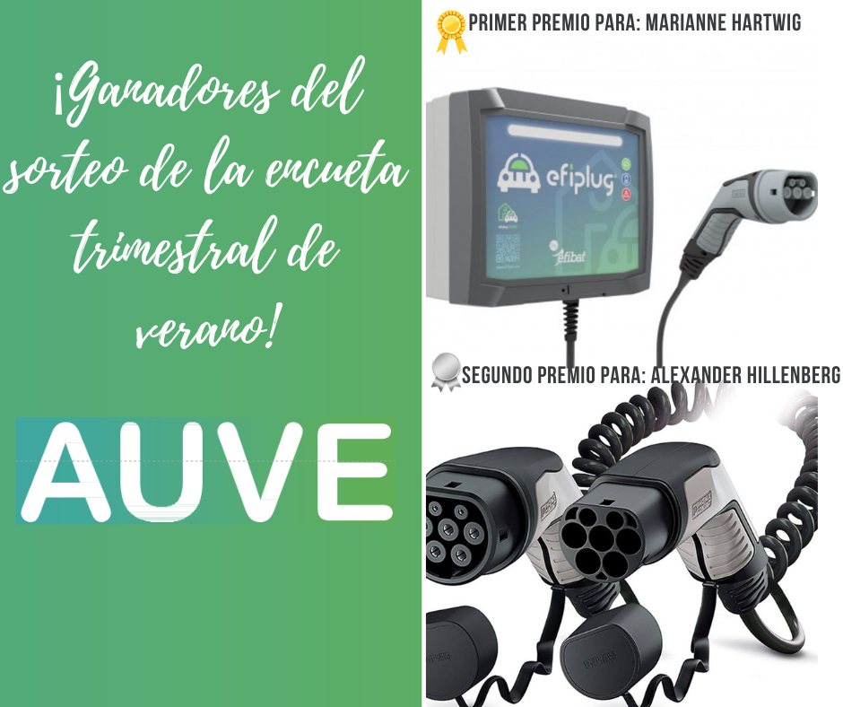 AUVE, la Asociación de Usuarios de Vehículos Eléctricos, se enorgullece de promover activamente la movilidad eléctrica en España. Nos complace anunciar a los afortunados ganadores de nuestro emocionante sorteo en agradecimiento a los más de 900 entusiastas que participaron en nuestra "encuesta trimestral". Vuestra contribución es invaluable y nos ayuda a comprender a fondo el panorama de la movilidad eléctrica en nuestro país.Para hacer esta experiencia aún más emocionante, decidimos organizar un sorteo como Auve con premios altamente atractivos. El primer premio consistía en un punto de recarga EFIPLUG C 1 6230-3,6 TII de EFIBAT, una solución innovadora para cargar tu vehículo eléctrico. El segundo premio incluía un práctico cable de carga en espiral, junto con su bolsa, cortesía de Phoenix Contact.