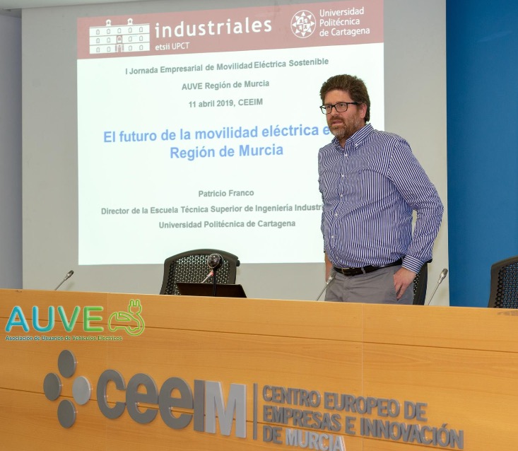 Representando a la Universidad Politécnica de Cartagena intervino D. Patricio Franco Chumillas Director de la Escuela Técnica Superior de Ingeniería Industrial (ETSII) para abordar el tema del Futuro de la movilidad eléctrica en la Región de Murcia, mostrando las diferentes carreras y masters que se impartían en el ámbito docente y las diferentes iniciativas que había en marcha para difundir la movilidad eléctrica también entre las escuelas e institutos, lo cual fue muy interesante a fin de evaluar la implementación y proyección futura y esperanzadora a nivel educativo de la movilidad eléctrica sostenible.