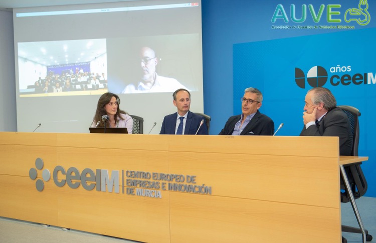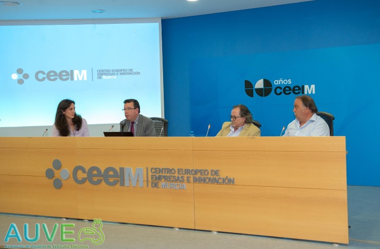 A continuación intervinieron D. José de la Cruz López García Presidente de Gretamur (Gremio de Talleres de Reparación de Vehículos de la Región de Murcia) que apuntó la necesidad de que los talleres se adapten a la movilidad eléctrica. A continuación intervino D. Javier Celdrán Lorente, Consejero de Empleo, Universidades, Empresa y Medio Ambiente que incidió en la implicación de su Departamento en el desarrollo de la movilidad eléctrica y la publicación de ayudas para la compra de vehículos e instalación de puntos de recarga para vehícuos eléctricos. Seguidamente, el Delegado de Auve en la Comunidad Autónoma de la Región de Murcia, D. Francisco Javier Martínez Abellán tomo la palabra para concienciar a todos los interesados, tanto empresas como particulares, de la necesidad de unir fuerzas para desarrollar la movilidad eléctrica sostenible, remarcando el califiicativo de "sostenible" en la movilidad eléctrica a fin de conseguir un desarrollo del sector respetuoso con el medio ambiente que redunde en una mejora en la calidad de vida de las personas.