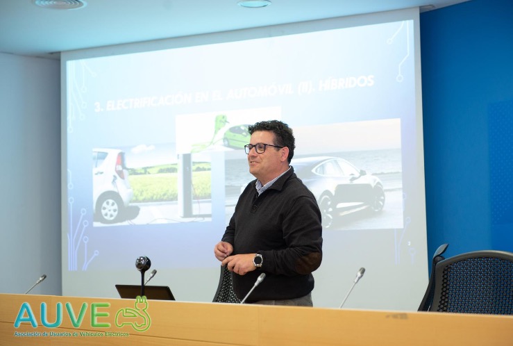 Mas tarde se abordó el tema de las características de los vehículos eléctricos impartido por uno de nuestros socios y colaboradores más activos, D. César Corbalán Rodríguez, Ingeniero Superior en Organización Industrial, Ingeniro de Tasación y homologación de vehículos, de una forma muy ilustrativa y clara.