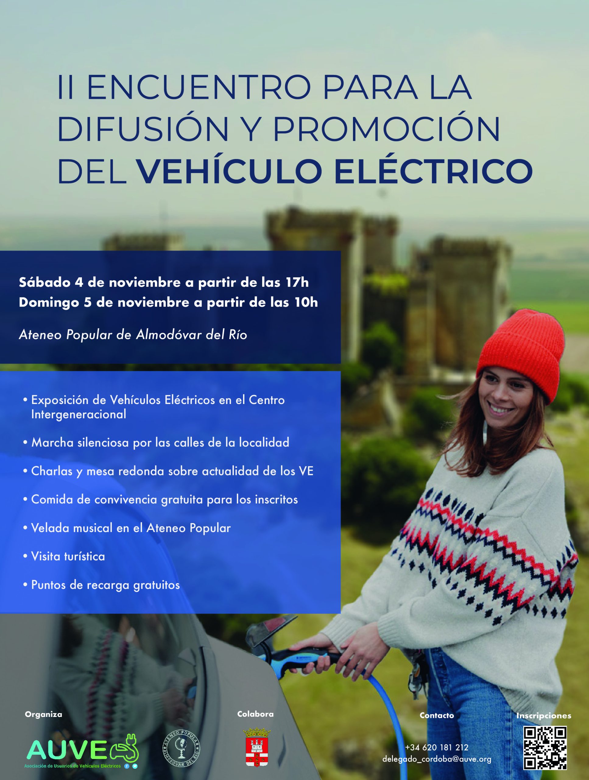 Los próximos días 4 y 5 de noviembre se celebrará el II Encuentro para la Difusión y Promoción del Vehículo Eléctrico en Almodóvar del Río. Ante el éxito que tuvo la convocatoria celebrada el otoño pasado, la delegación en Córdoba de la Asociación de Usuarios de Vehículos Eléctricos (AUVE) y el Ateneo Popular de Almodóvar del Río han decidido volver a convocar a los propietarios de estos silenciosos vehículos en una nueva edición, en la que también colabora el Ayuntamiento de Almodóvar, como ya ocurriera el año pasado.
