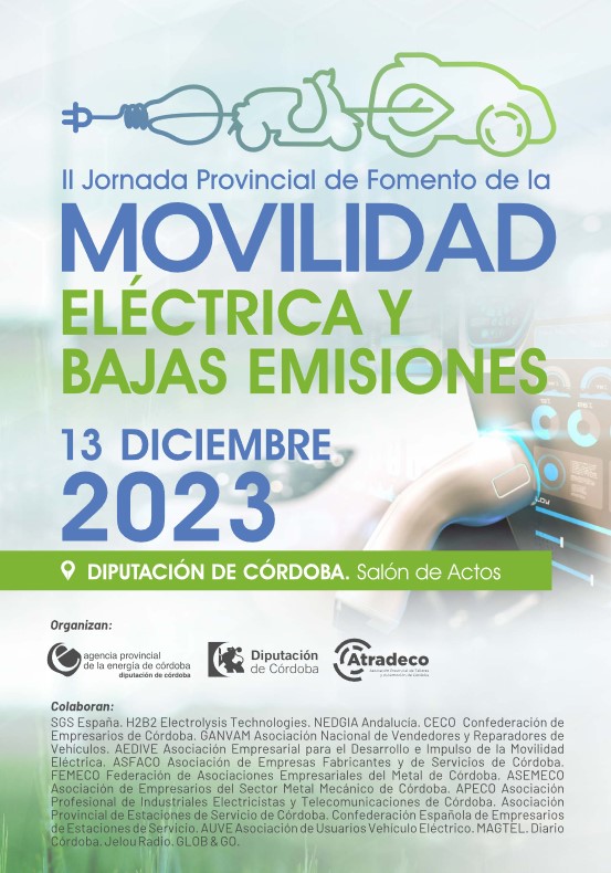 La Agencia Provincial de la Energía de la Diputación de Córdoba ha organizado este miércoles 13 de diciembre la II Jornada Provincial de Fomento de la Movilidad Eléctrica y Bajas Emisiones, que ha tenido lugar en el salón de actos del Palacio de la Merced de la capital cordobesa.