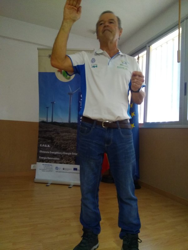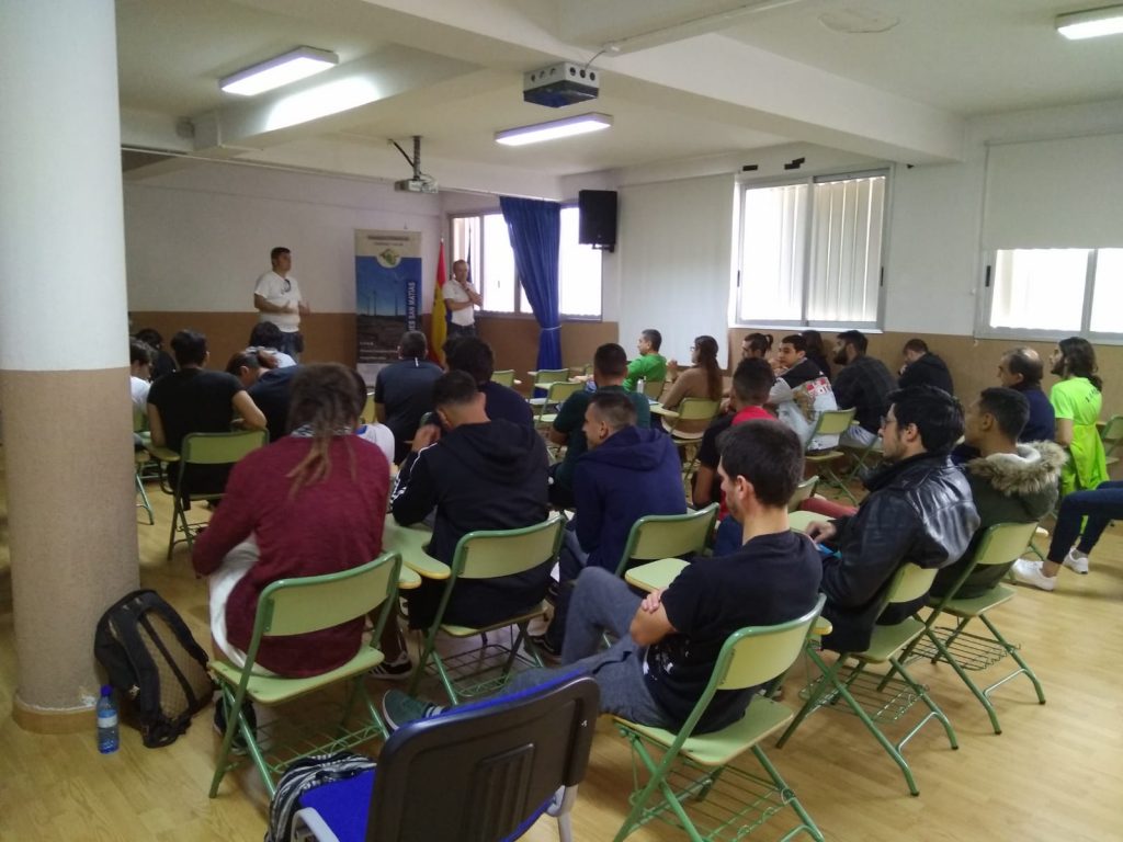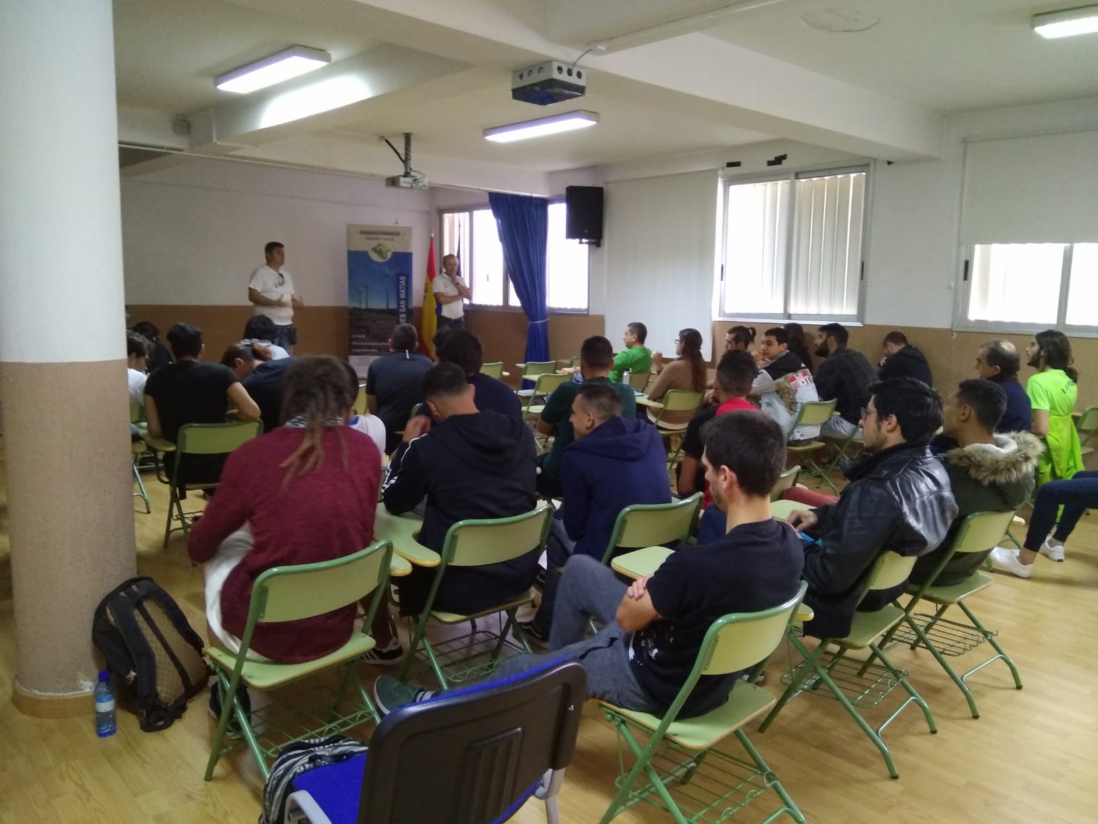La charla fue impartida por Tomas Gómez y Edgar Viera para los alumnos de la Formación Profesional de Energías Renovables que están próximos a incorporarse al mercado laboral. Fue una charla seguida con interés por parte de los asistentes donde se explicaron muchas cosas tales como los tipos de vehículos eléctricos existentes en el mercado, los tipos de conectores para la carga, las ayudas estatales, la composición y pormenores de una batería, y muchas otras cuestiones que iban preguntando los jóvenes y profesores que habían en la sala.