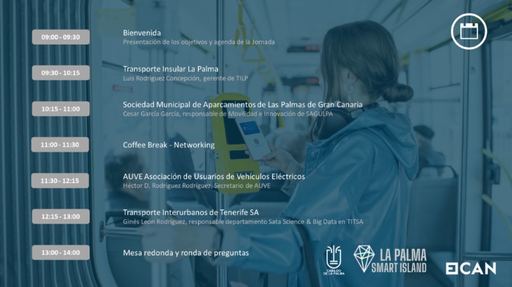 En la agenda había ponencias por parte del gerente de la compañía de Transportes Insular de La Palma (TILP), Luis Rodríguez, el responsable de Movilidad e Innovación de SAGULPA (Sociedad Municipal de Aparcamiento de Las Palmas de Gran Canaria), César García,un servidor, Héctor Rodríguez, por parte de la AUVE, y finalmente, el responsable del departamento de Data Science & Big Data en TITSA (Transportes Interurbanos de Tenerife S.A.), Ginés León.El gerente de TILP habló de los problemas para implantar una movilidad sostenible en la isla debido a su dispersión poblacional así como a la orografía de la misma, aparte de exponer los problemas de recurso debido al aumento de viajeros debido a la gratuidad del transporte público en la coyuntura actual y sus temores de lo que pueda ocurrir si esa gratuidad desaparece. También habló de la necesidad de ubicar intercambiadores para facilitar aún más el uso del transporte público en las poblaciones rurales, que puedan facilitar a la población el cambio intermodal.