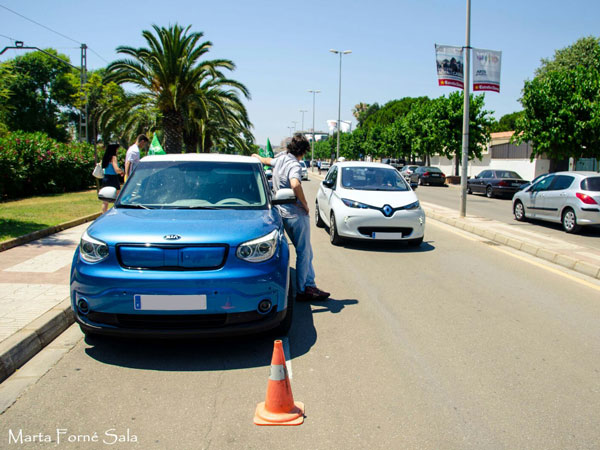 También estuvieron grabando del programa Repor de 24h de RTVE, para uno de sus reportajes sobre la contaminación y solución con movilidad eléctrica. Transcurrido el tiempo de carga para todos los VEs que lo precisaban, se organizó una desfilada con todos los VEs, por la localidad hasta el restaurante en la playa, donde se realizó la comida y despedida.Este trayecto de VEs, lo realizamos por calles estrechas y de un solo sentido, provocando un efecto que llamó mucho la atencion de todas las personas de la calle y terrazas. De repente, al pasar nosotros, éramos los suficientes, como para desplazar los demás vehículos ruidosos y solo se oía el silencio al paso de nuestros vehículos.