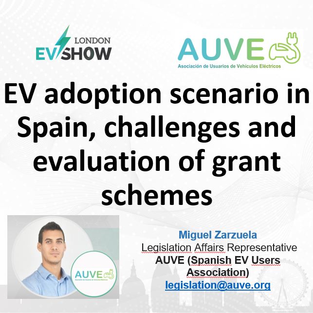 Esta semana se está desarrollando el London EV Show en Reino Unido en el que AUVE ha participado presentando el estado de la adopción al vehículo eléctrico en España, así como los retos y la evaluación de los sistemas de ayuda e incentivos a la movilidad eléctrica.
